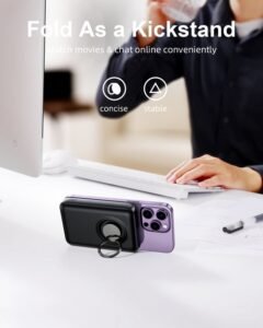 جوي روم Jr-W050 ميني باور بانك 15 واط لاسلكي 10000 مللي امبير مع حامل رينج – اسود