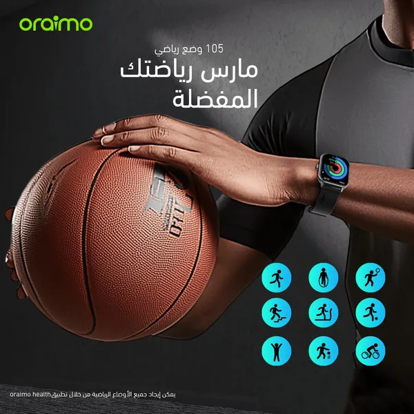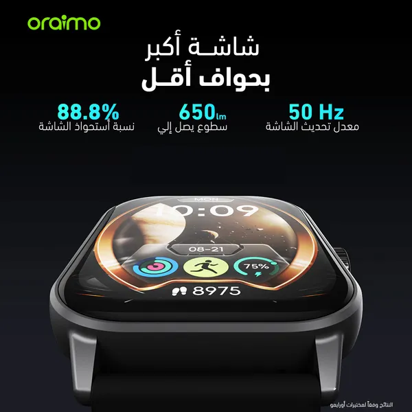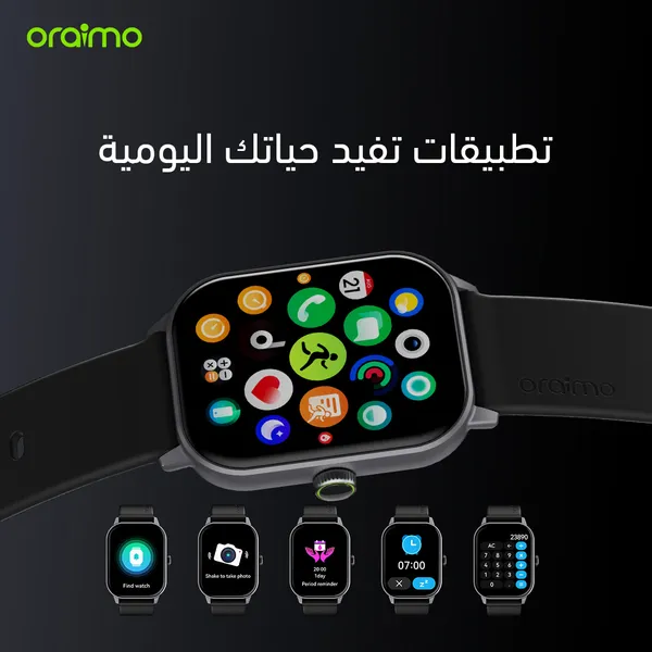 الوظائف الرئيسية: عداد خطوات، مكالمات بلوتوث، مراقبة معدل نبضات القلب، قياس نسبة الأكسجين في الدم