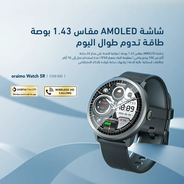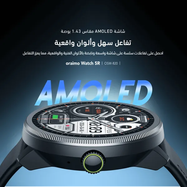 حجم الشاشة : 1.43 بوصة AMOLED 466*466